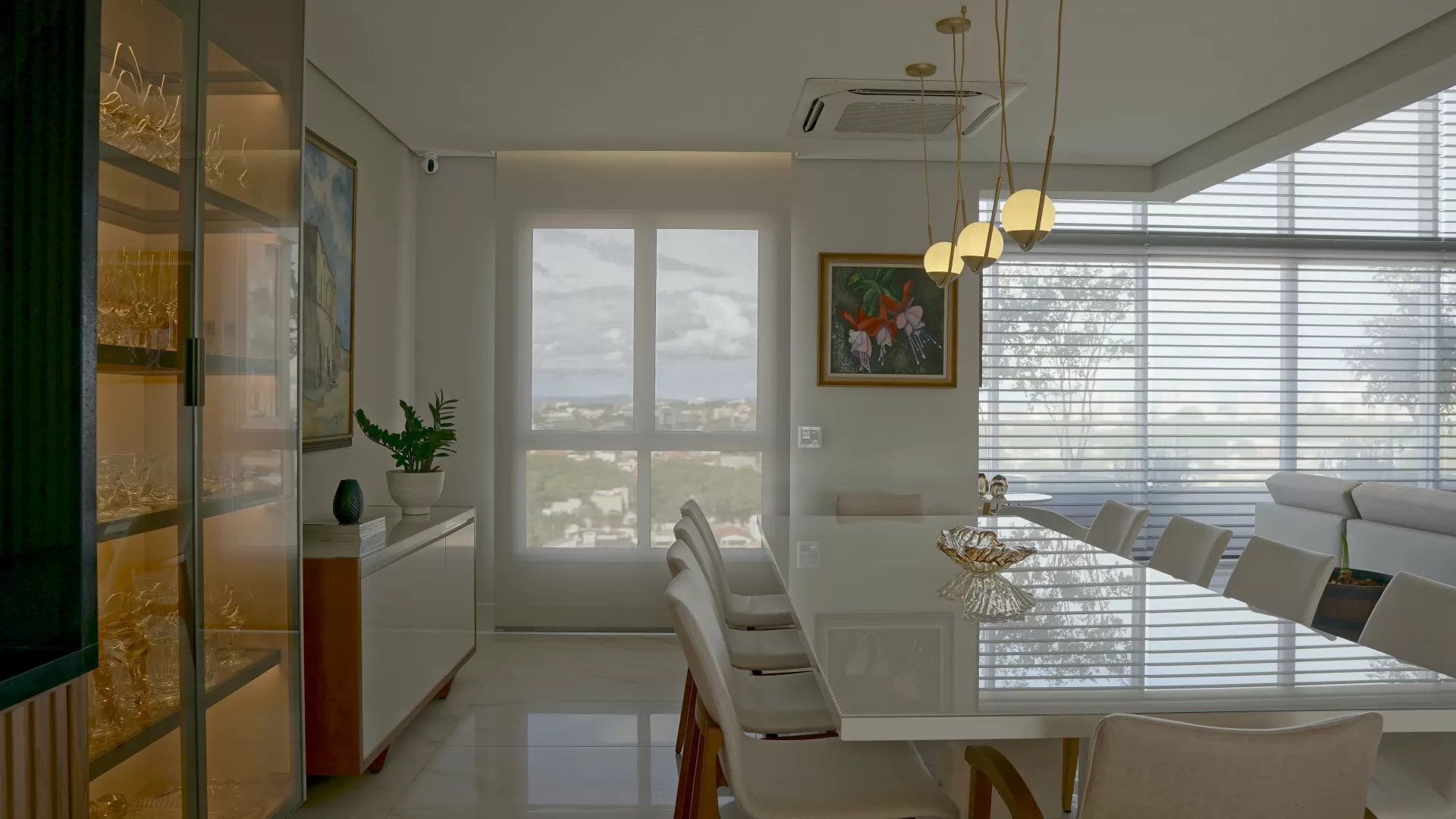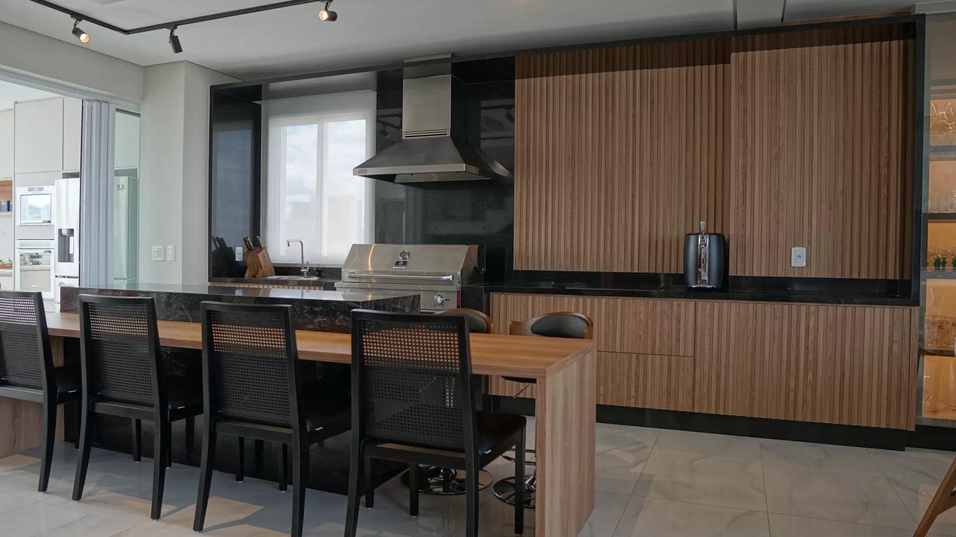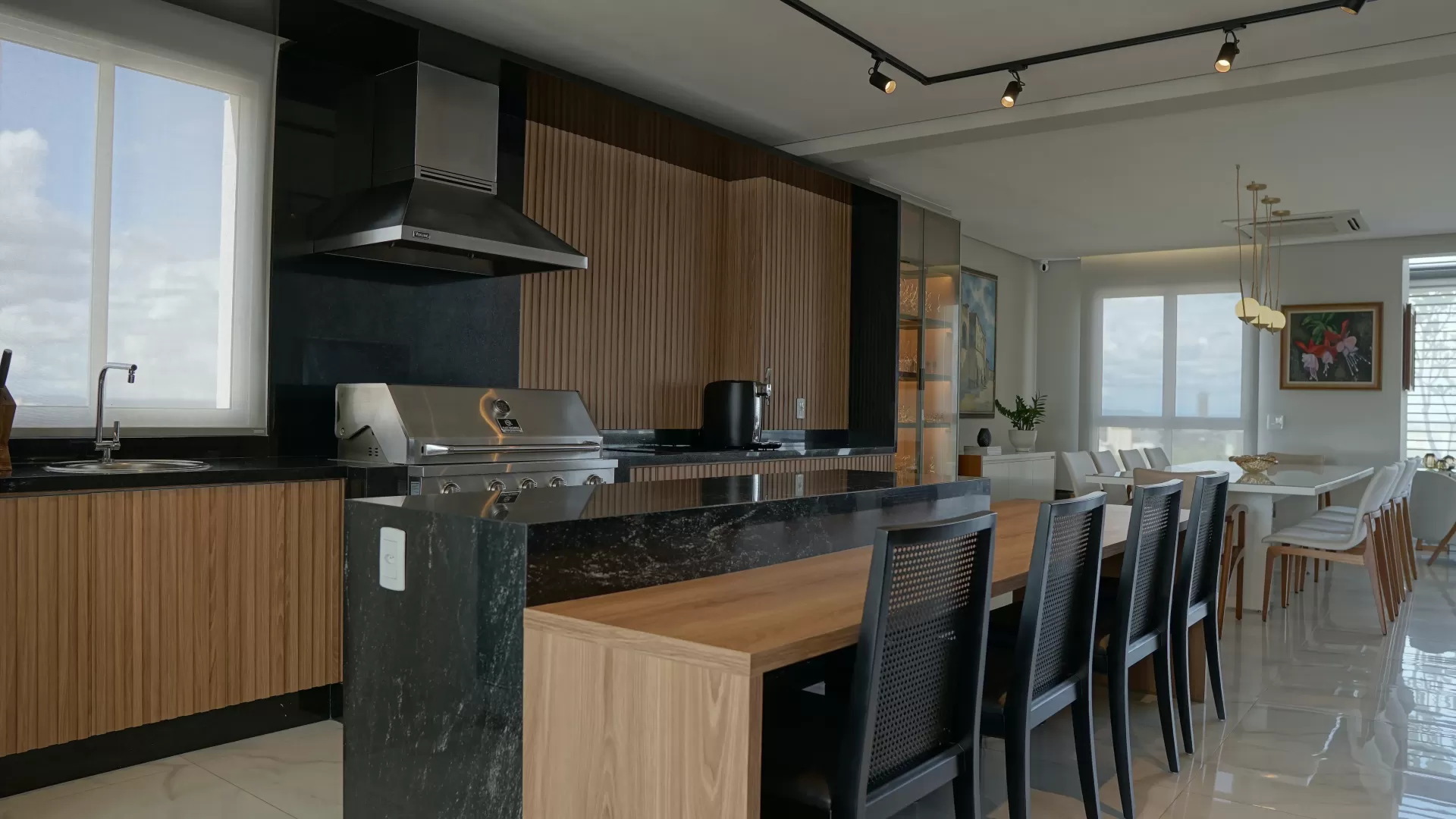 Com a nuance de tons sóbrios e amadeirado, proporcionando um lar convidativo para criar novos momentos e memórias inesquecíveis com os familiares e amigos.