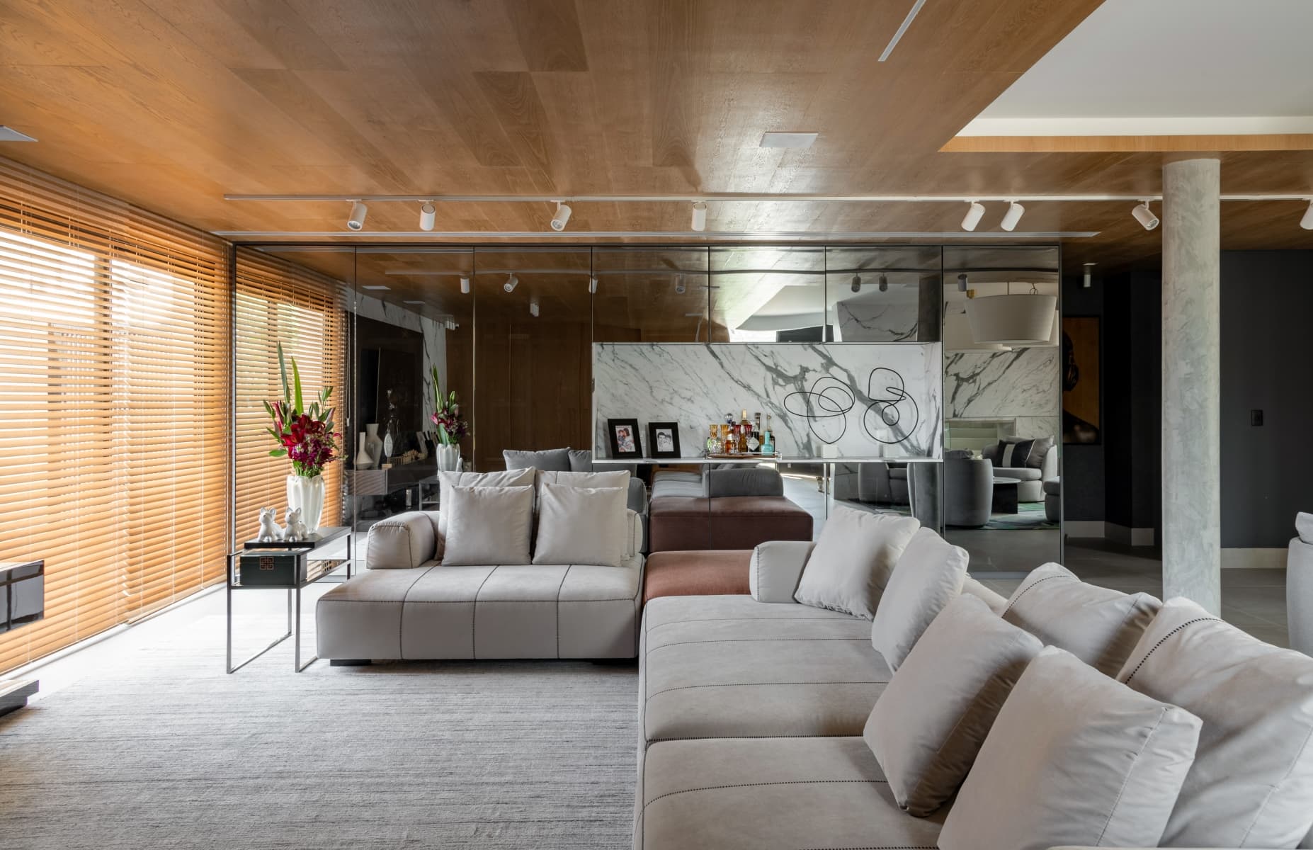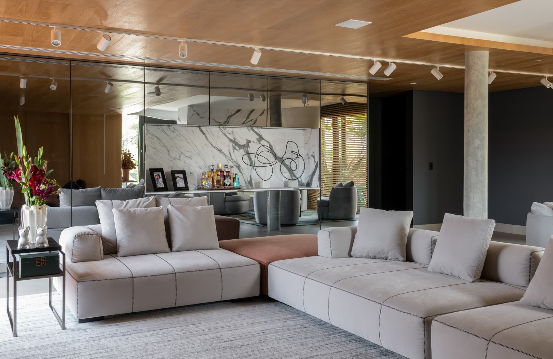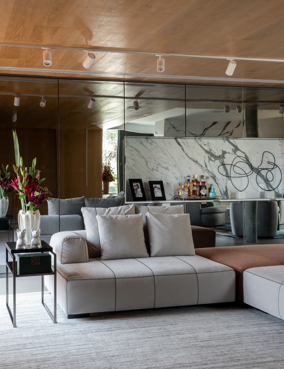 Raquel criou uma atmosfera moderna e aconchegante no redesign do living.