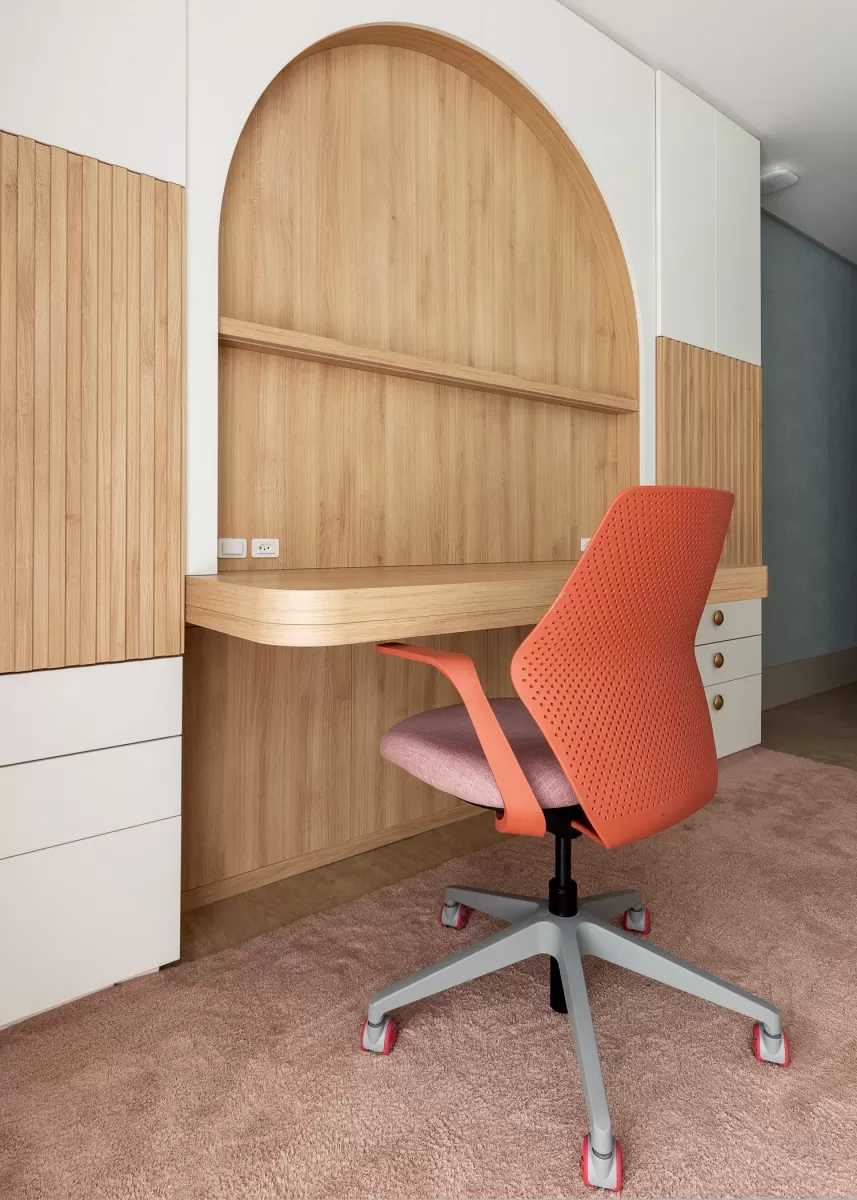 “Penso que essa receptividade foi importante para não podar uma vocação.” Em 1995, se formou em arquitetura pela Universidade Federal de Santa Catarina e, depois de uma breve passagem pelo funcionalismo público, decidiu abrir o próprio escritório. “Lembro-me de estar na sala da casa dos meus pais olhando pela janela e me dei conta de que, em frente ao prédio onde morávamos, havia uma garagem que ninguém usava.” Depois de conversar com a proprietária, transformou o local no seu primeiro escritório, em 1999. Hoje, a arquiteta tem sociedade com o marido, Matheus Costa Maruchi, que complementa a experiência técnica do escritório com a sua formação em filosofia. “Digo que ele é meu contra-regra, pois sempre traz algum questionamento diferente e interessante que passa despercebido por mim.” Enquanto Ana Paula lidera a parte de criação, Matheus fica responsável pelo administrativo e pelas obras. Os projetos assinados pelo escritório são variados, de residências e edifícios a escolas, clínicas médicas, escritórios de advocacia, praças, entre outros. Ana Paula não define um estilo que carimba todos os seus trabalhos. Prefere estar aberta para ouvir os clientes desde o primeiro encontro, de forma que consiga estabelecer relações de confiança e atender as necessidades de cada projeto.