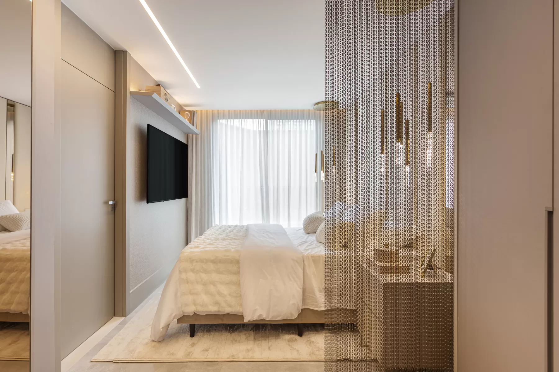 Ambiente de extremo bom gosto, com proposta minimalista, paleta de cores em tons neutros e detalhes pontuais que agregam personalidade. Um espaço arrojado, equilibrando sofisticação e contemporaneidade.