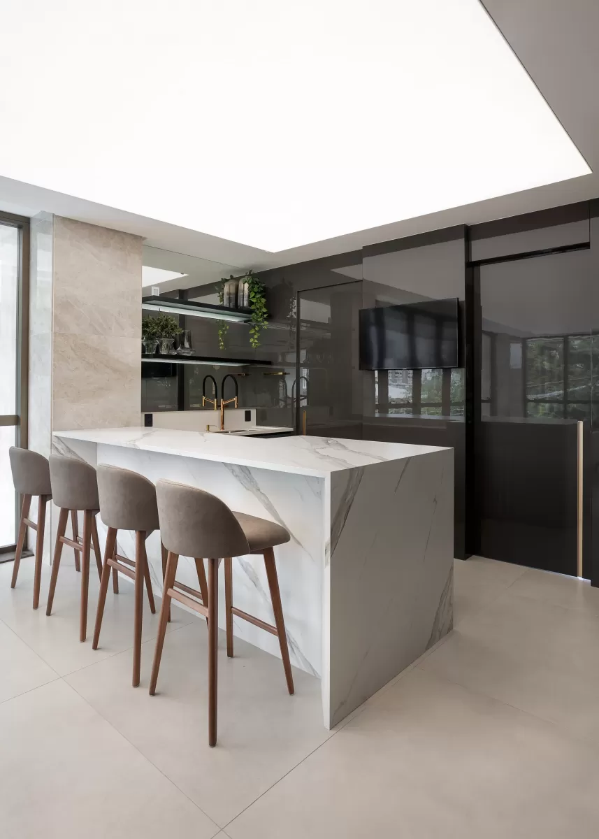 “Penso que essa receptividade foi importante para não podar uma vocação.” Em 1995, se formou em arquitetura pela Universidade Federal de Santa Catarina e, depois de uma breve passagem pelo funcionalismo público, decidiu abrir o próprio escritório. “Lembro-me de estar na sala da casa dos meus pais olhando pela janela e me dei conta de que, em frente ao prédio onde morávamos, havia uma garagem que ninguém usava.” Depois de conversar com a proprietária, transformou o local no seu primeiro escritório, em 1999. Hoje, a arquiteta tem sociedade com o marido, Matheus Costa Maruchi, que complementa a experiência técnica do escritório com a sua formação em filosofia. “Digo que ele é meu contra-regra, pois sempre traz algum questionamento diferente e interessante que passa despercebido por mim.” Enquanto Ana Paula lidera a parte de criação, Matheus fica responsável pelo administrativo e pelas obras. Os projetos assinados pelo escritório são variados, de residências e edifícios a escolas, clínicas médicas, escritórios de advocacia, praças, entre outros. Ana Paula não define um estilo que carimba todos os seus trabalhos. Prefere estar aberta para ouvir os clientes desde o primeiro encontro, de forma que consiga estabelecer relações de confiança e atender as necessidades de cada projeto.