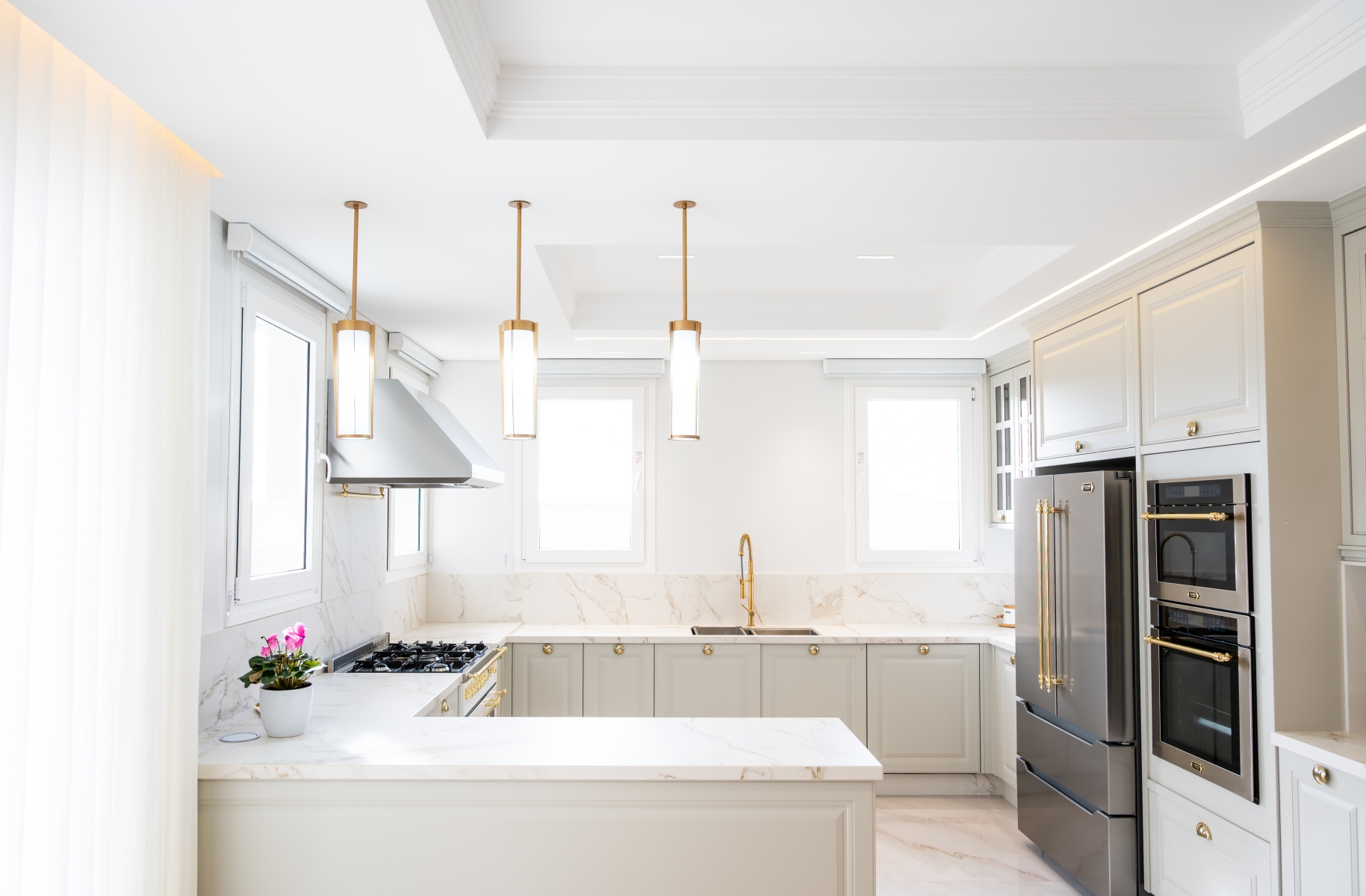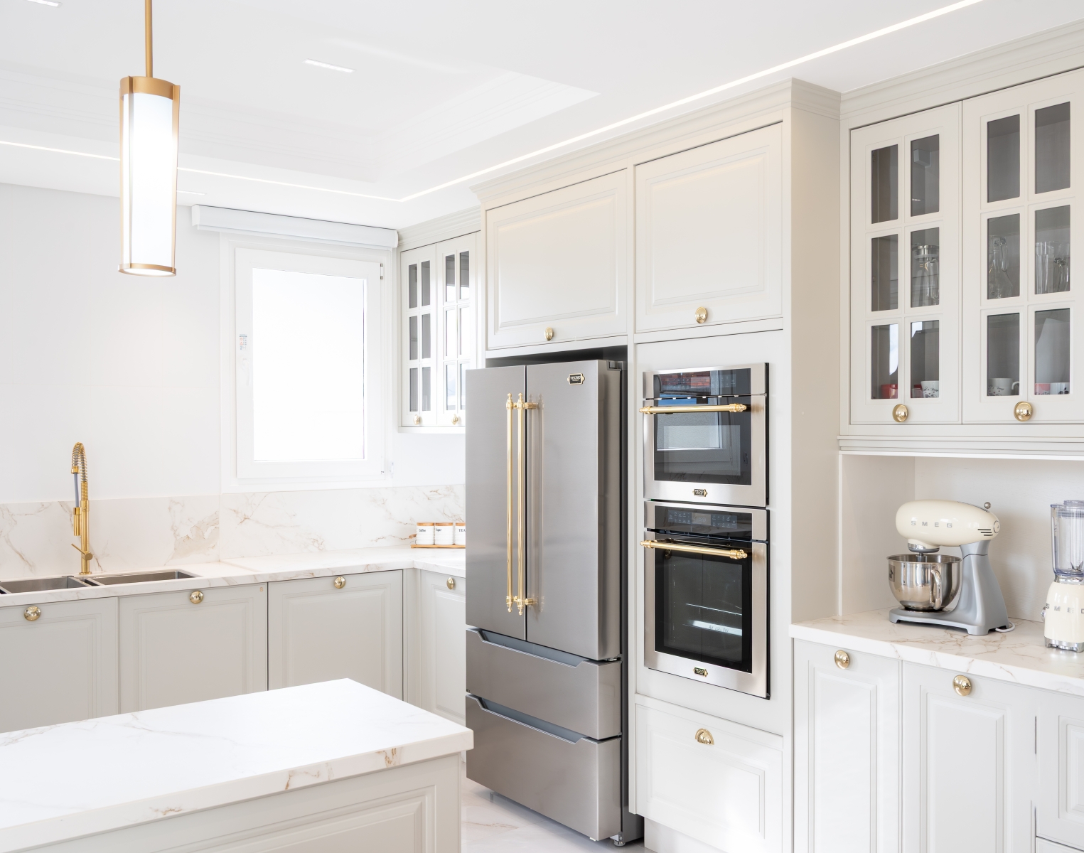 A proposta foi seguir uma paleta de cores suave e tranquila, com predominância de tons white, sem interferências de cores no projeto. Como os clientes apreciam muito o ambiente da cozinha, adotamos essa linha apresentada, que veio totalmente ao encontro da proposta pensada para o espaço.