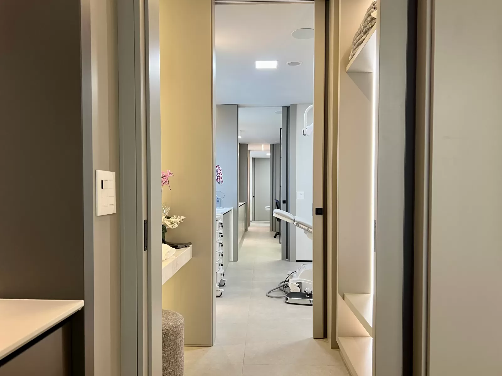 Com design minimalista e contemporâneo, os consultórios aliam sofisticação e funcionalidade para proporcionar um ambiente de atendimento único e personalizado, refletindo a dedicação à excelência em cada detalhe. O ambiente foi pensado para promover uma experiência de atendimento excepcional, desde o primeiro contato até o final da consulta.